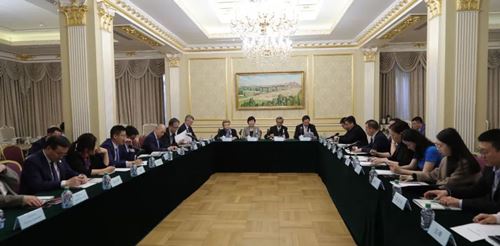 4月23日,中国人民对外友好协会会长林松添一行出席“经贸合作与民间外交”在俄中资企业座谈会。中国驻俄罗斯大使馆公使衔参赞刘庆华、俄中友协库利科娃第一副主席、萨纳科耶夫副主席、阿利希波夫副主席、俄罗斯中国总商会会长、中诚通国际投资有限公司总经理周立群、新华社欧亚总社社长范伟国、中国建设银行(俄罗斯)有限责任公司总经理刘文勇等参加。周立群主持座谈会,在俄中资汽车、工程机械、金融、工程承包、科技等行业50余家企业(机构)、媒体代表参加座谈。