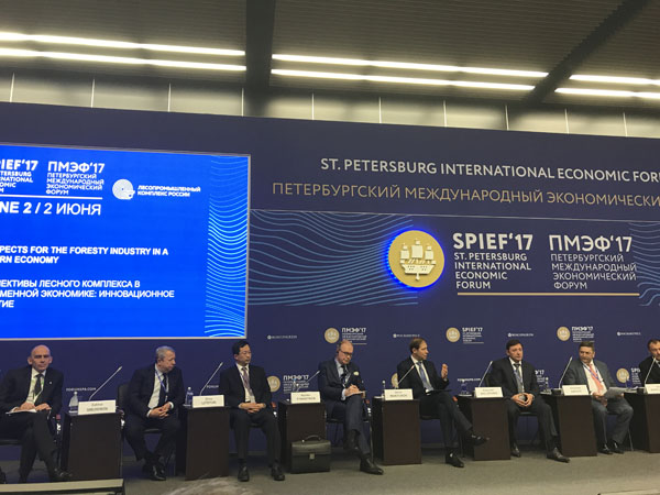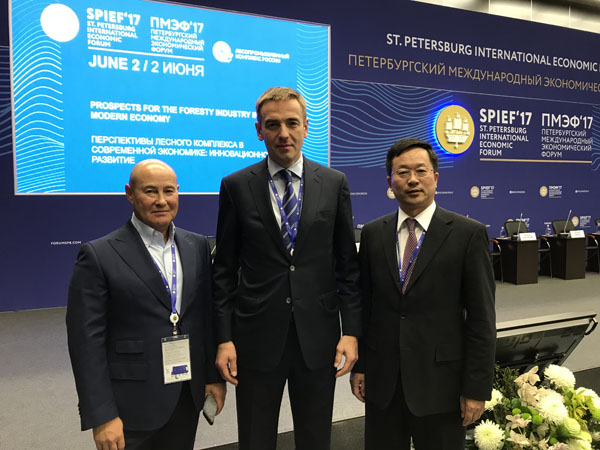 应俄罗斯联邦工贸部的邀请,周立群参加了“林业综合体在当今世界经济中的前景:创新发展”平行论坛并发言,俄联邦副总理赫洛波宁、俄联邦工贸部部长曼涂洛夫、俄罗斯外经银行行长高尔科夫以及其他林业领域大型企业负责人出席并发言。周立群在论坛发言中说,中俄林业经贸合作是两国长期的战略选择。俄罗斯丰富的森林资源,形成了中俄两国区域经济合作的最佳对接点。中国诚通集团所属中国纸业投资总公司是中国境内最大的纸品生产企业之一,正在与哈巴罗夫斯克当地企业就合资建设纸浆厂事宜进行对接商谈,此举正是中国企业积极参与“一带一路”建设,践行“一带一路”与欧亚经济联盟战略的有效对接。