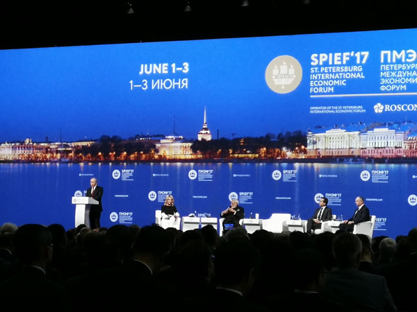2017年圣彼得堡国际经济论坛的主题为“寻求全球经济新平衡”,俄联邦总统普京、印度总理莫迪、奥地利总理克恩以及摩尔多瓦总统伊戈尔·多东参加全会,并分别做主旨发言。
